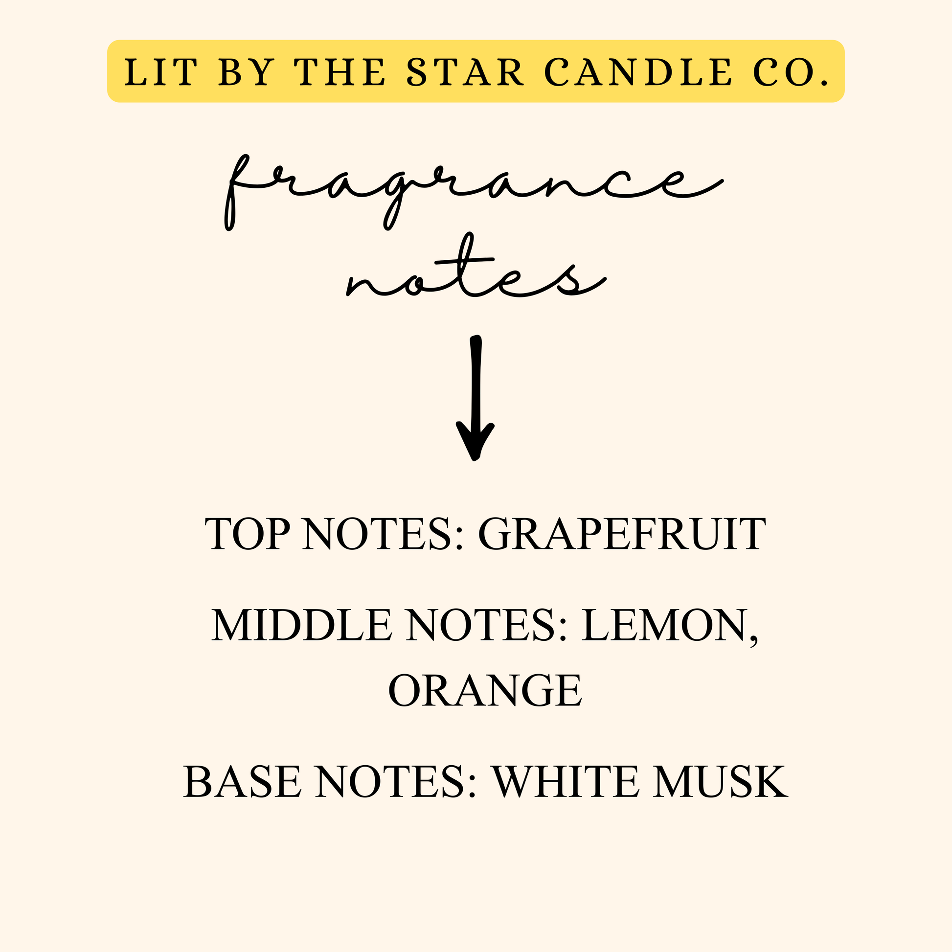 This Citrus Blend Scent has a luxurious notes of Grapefruit, Orange, Lemon, Musk.