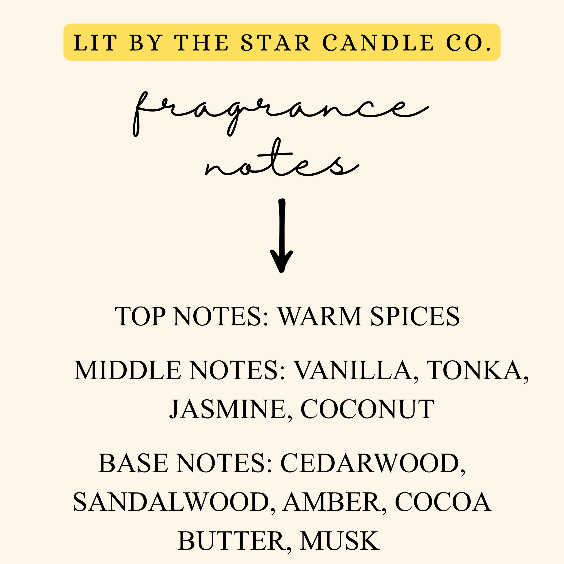Our candles are crafted with a custom coconut soy wax blend, phthalate-free fragrance oils, and two lead-free cotton wicks, providing an excellent burn time.