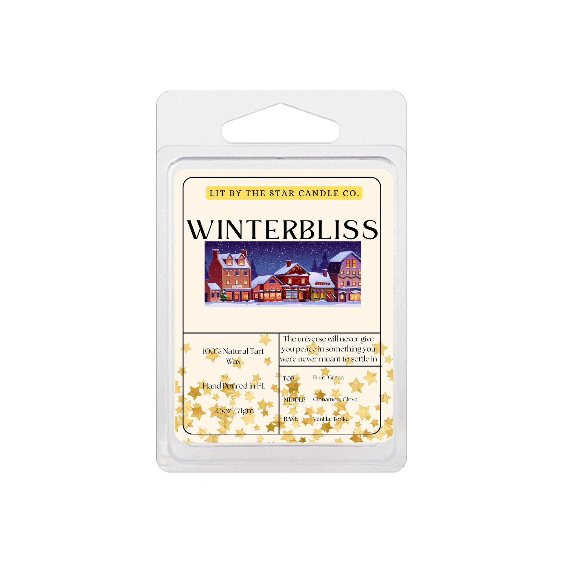 - Net weight of 2.5 oz of wax (Please note that since each wax melt is hand-poured, weight may vary slightly)